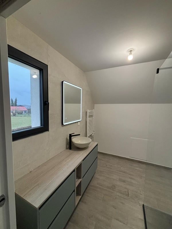 Nous installons ensuite votre mobilier de salle de bain, rangements et éclairages, en veillant à un agencement pratique et harmonieux. Pour une finition soignée, nous posons votre carrelage, faïence et réalisons les finitions de peinture. Chaque détail compte pour vous offrir une salle de bain esthétique, fonctionnelle et durable.
